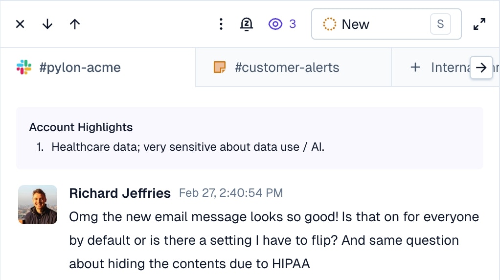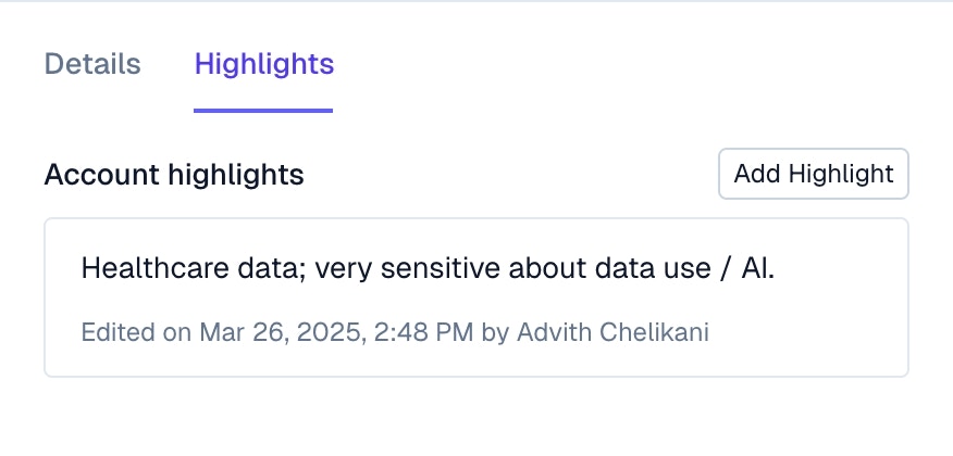 Highlights are a great way for customer success / sales / or other customer facing teams to pass context to teammates responding to customer requests.