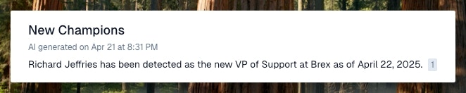 Using the activity API, write in custom events that will show up in the account activity timeline and be accessible from AI features like Ask AI and be available in the account blocks. Account activities can also be aggregated on the account level with Formulas!