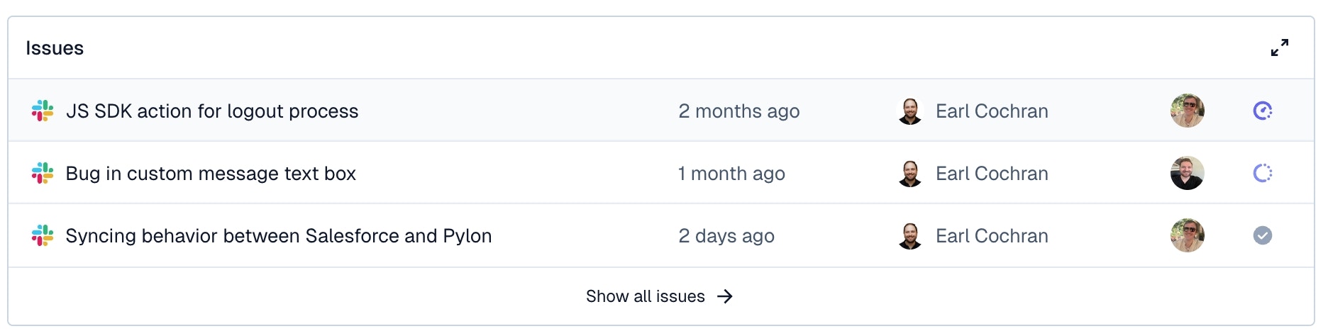 For users with a Ticketing Integration, you can display a list of linked product issues tied to that customer.