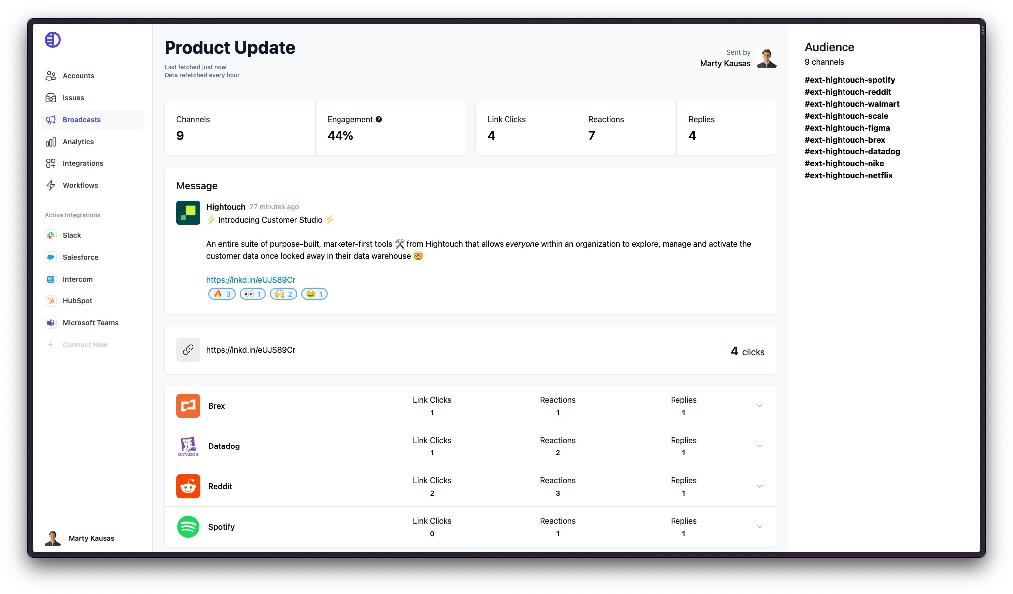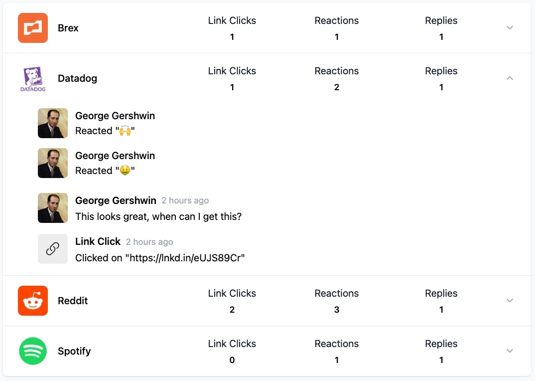 You can view analytics for a Broadcast by going to the Broadcasts Page and clicking on the Broadcast you sent.