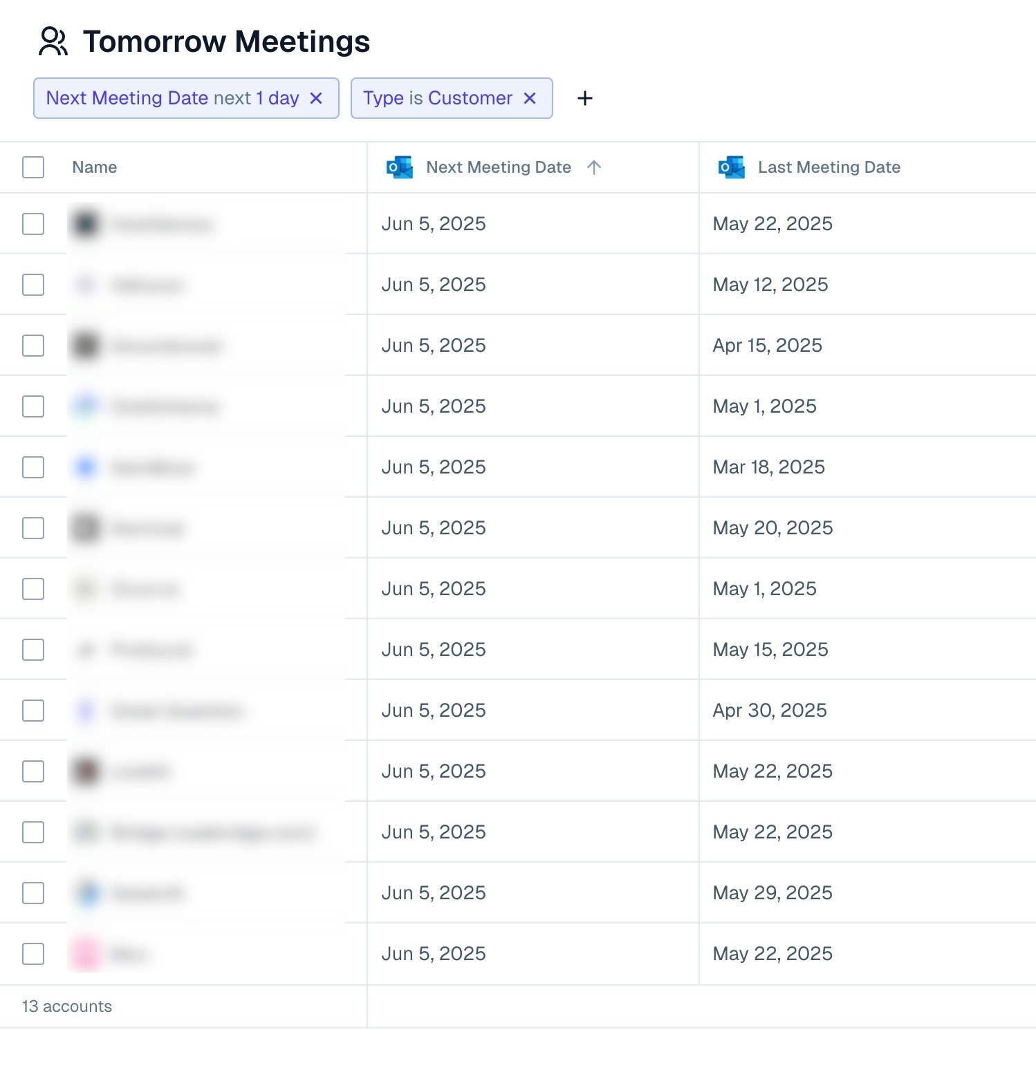 Calendar events will start to backfill and two new custom fields will be available for use across the product: Next Meeting Date and Last Meeting Date. These fields can be used anywhere that Custom Fields can be used, including in views, triggers, and more. They show up in for accounts and are viewable in the account and issue sidebars.