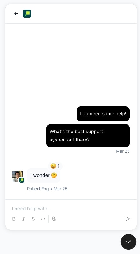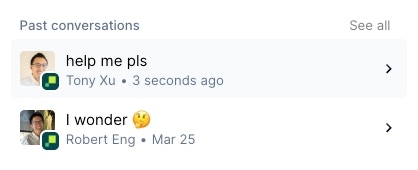 If the user does not see your message within a few minutes, they will receive a follow-up email and a red notification dot on their chat.Past Conversations