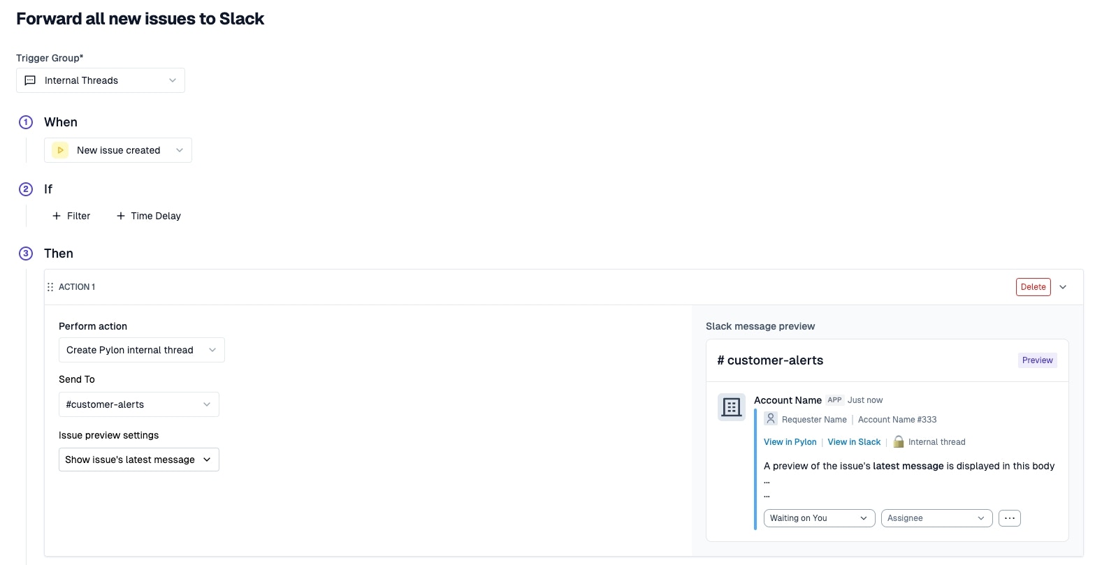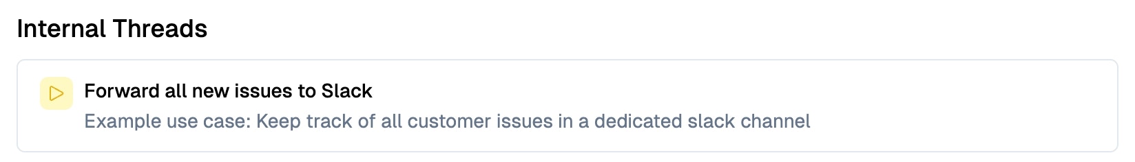 Internal threads are a dedicated threads in Slack to discuss and collaborate on new customer issues internally. All discussion in these threads will be synced back to Pylon! We recommend setting this up prior to connecting any other channels so they’ll be ready to sync as soon as you pull data into Pylon.For Small Teams