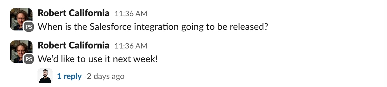 Messages from Slack are automatically sent to Pylon’s Views and Internal Threads for tracking and response.
