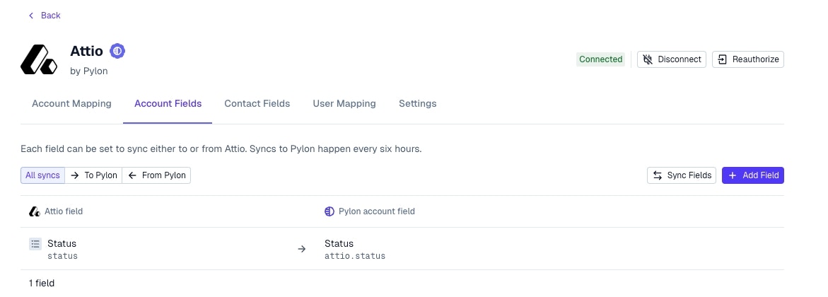 Either sync fields from Pylon or to Pylon from Attio. Fields synced into Pylon are available to use in all Pylon feature, like as filters in views, triggers, macros, etc.