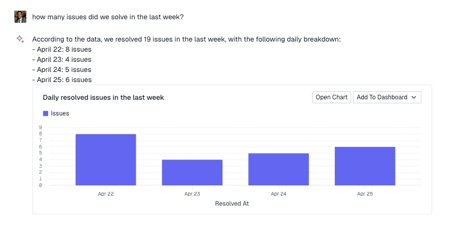 Use Ask AI to summarize themes of issues for the rest of your team:- Summarize common topics for bugs over the last week