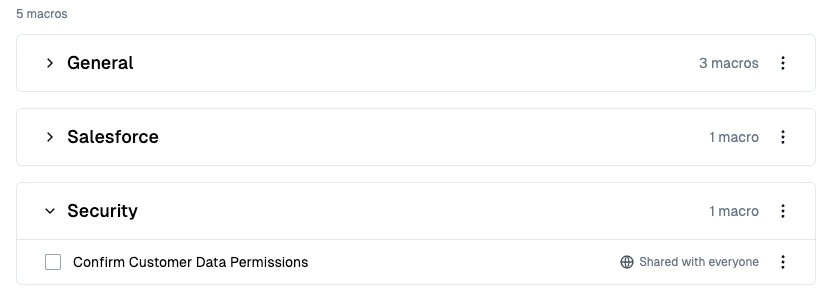 - Create macros for your whole organization, your team, or just yourself.