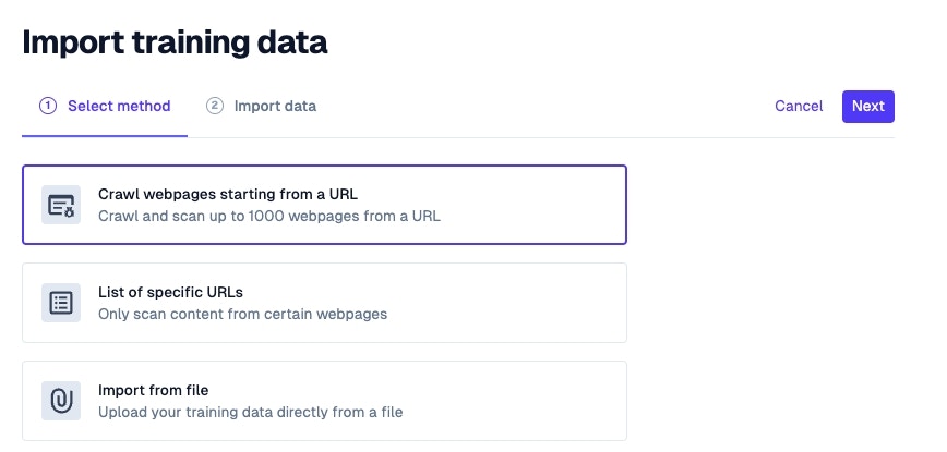 For programmatic data ingestion, Pylon provides Training Data APIs that allow you to upload documents directly without publishing them to the public internet.
