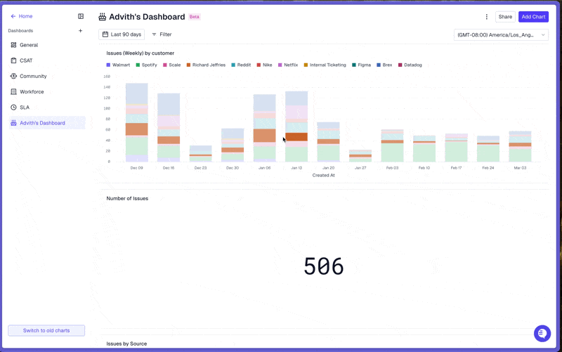 Reorder and resize graphs on your dashboard, create your own charts, and share with different sets of people!