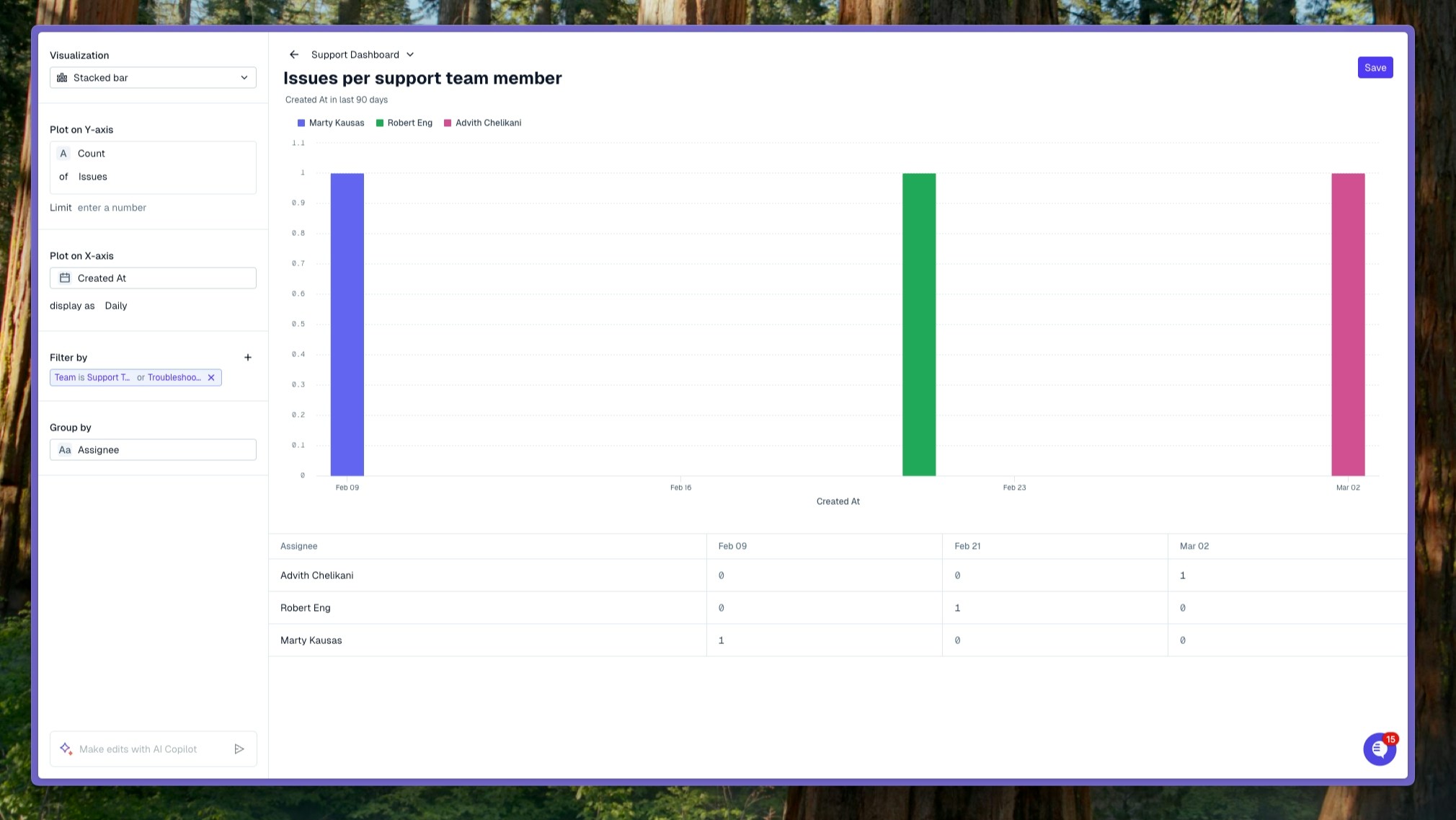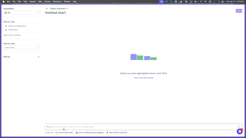 Create graphs with AI by describing what you are looking for and letting our AI copilot help guide you.