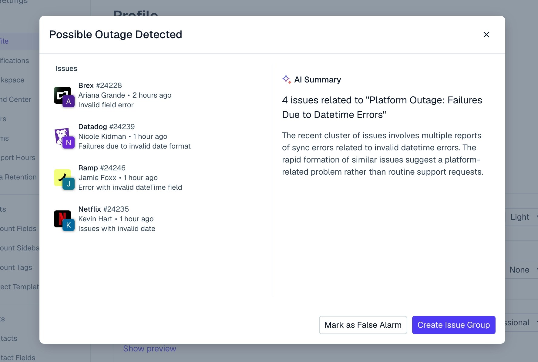 - Create an Issue Group Take advantage of Issue Groups to organize and manage all issues related to this anomaly.