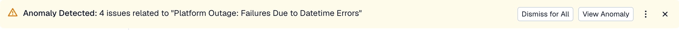 - Dismiss for All If no further action is needed, you can dismiss the anomaly banner for everyone on your team.